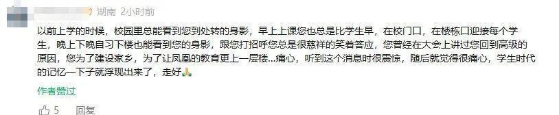 近日,多名网友发文,2月28日晚,凤凰县高级中学校长王辉下班途中发生车祸,不幸去世。在网帖下面,上千网友留言悼念,追忆这位校长曾经关心自己、尽心工作的点滴。3月2日,潇湘晨报记者从当地获悉,王辉确因车祸去世属实,年仅59岁。出事前王辉担任该校党总支书记,但大家仍愿意称呼他“王校长”。